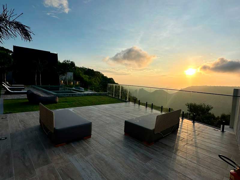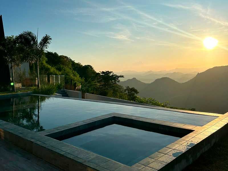 Além da hospedagem de luxo, você será envolvido pela paisagem exuberante e pelo clima agradável da serra. O mirante, com suas vistas panorâmicas, torna o local perfeito para momentos inesquecíveis, sejam eles a dois ou em família.